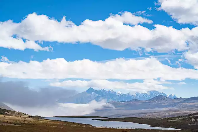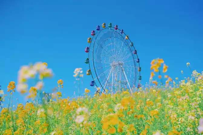 sky here is not rainy, there are many white clouds and not too sunny, and the green grass is fresh and the air is fresh, which is very suitable for sightseeing and leisure.