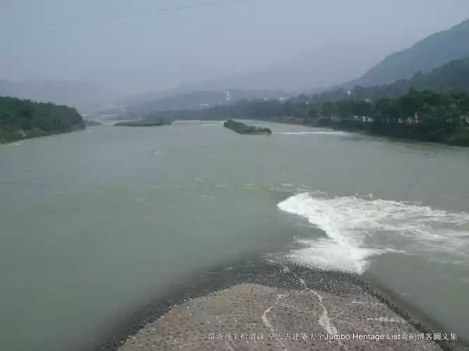 In addition, in ancient times, rafts were used to artificially change the diversion ratio of the inner and outer rivers. The raft is a kind of interception object with several logs as the skeleton, covered with bamboo mats on the outside, and filled with sediment inside. When needed, a number of rafts can be placed on one side of the river to reduce the amount of water on that side.Generally, this method is used to intercept the outer river in spring when there is less water to increase the water supply of the inner river, and then cut off the raft after the spring plowing is over and the water level rises to restore the water flow to normal. After 1974, permanent sluice gates were built at the mouth of the Waijiang River, thus replacing the raft to achieve cofferdam and flood discharge.