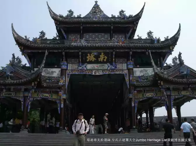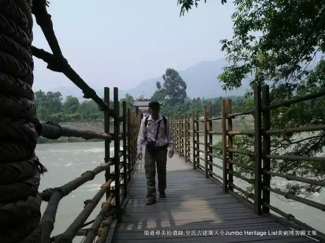Anlan Bridge, commonly known as the Suo Bridge, spans the Dujiang Weir of the Minjiang River. In the past, bamboo cables were used as cables, wooden stakes as piers, and bamboo ropes were used to support the bamboo ropes, which were coherently constructed. It is covered with wooden planks and equipped with cables on the side, with a total length of more than 500 meters. The bridge was built before the Song Dynasty, destroyed in the war at the end of the Ming Dynasty, and rebuilt during the Qing Jiaqing period. . .
