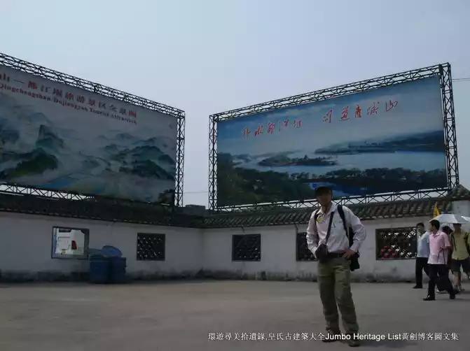 Jumbo Huang citation resources: The Dujiangyan is an ancient irrigation system in Dujiangyan City, Sichuan, China. Originally constructed around 256 BC by the State of Qin as an irrigation and flood control project, it is still in use today. The system's infrastructure develops on the Min River (Minjiang), the longest tributary of the Yangtze. The area is in the west part of the Chengdu Plain, between the Sichuan basin and the Tibetan plateau. Originally, the Min would rush down from the Min Mountains and slow down abruptly after reaching the Chengdu Plain, filling the watercourse with silt, thus making the nearby areas extremely prone to floods. Li Bing, then governor of Shu for the state of Qin, and his son headed the construction of the Dujiangyan, which harnessed the river using a new method of channeling and dividing the water rather than simply damming it. The water management scheme is still in use today to irrigate over 5,300 square kilometres (2,000 sq mi) of land in the region. The Dujiangyan, the Zhengguo Canal in Shaanxi and the Lingqu Canal in Guangxi are collectively known as the "three great hydraulic engineering projects of the Qin."