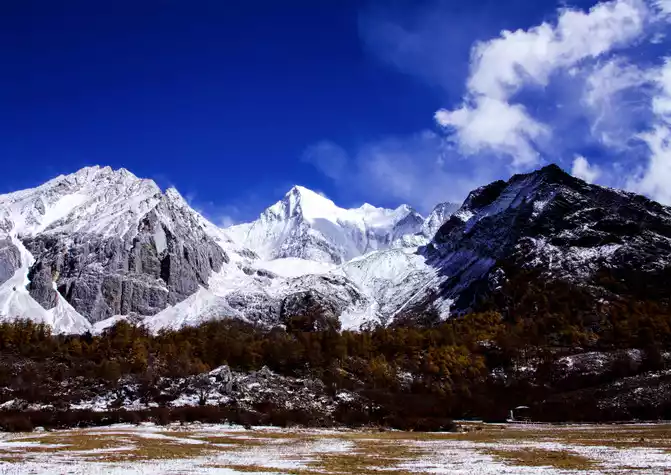 The three sacred mountains of Daocheng Aden are composed of three snow peaks: Xian Nai Ri, Yang Mai Yong and Xia Nuo Dorji, representing Guanyin Bodhisattva, Manjushri Bodhisattva and Vajra Hand Bodhisattva respectively. The three peaks are snow-capped all year round, echoing each other, approaching the sky, and terrifying.