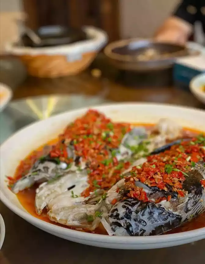 At the entrance, there is a row of fish tanks containing different species of fish, mullet, silver carp, river group, naked spot and other varieties of fish, choose the fish you like to eat, and then kill it now, so that it perfectly ensures the freshness of the fish, and finally slice it on a wooden plate, which is exquisite and beautiful.