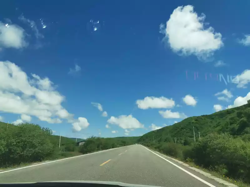Entering the grassland scenery road, the blue sky and white clouds outside are really refreshing