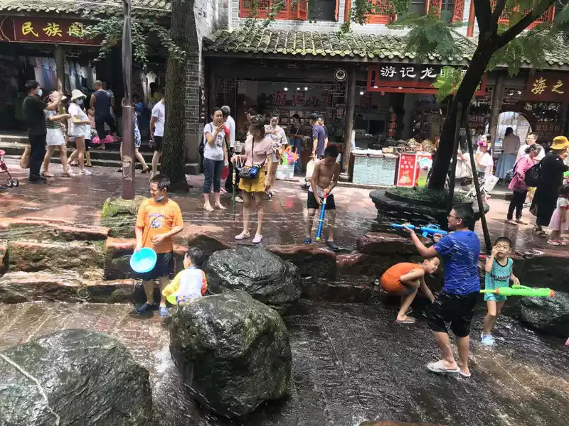 Or sleep until you wake up naturally, walking on the streets of Huanglongxi in the drizzle. The weather should be sunny today, and when I arrived yesterday, it was raining heavily and there were no people on the streets. Now I see many people arriving with water guns, and it seems that a fierce battle is inevitable.