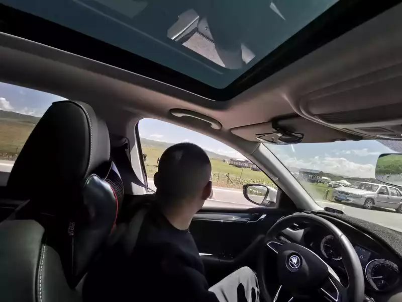 driver couldn't help but look around and was attracted by the grassland scenery outside