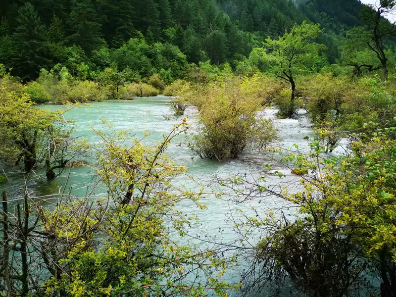 In the afternoon, the rain gradually stopped. The magical Jiuzhai, although we did not see the blue sky and white clouds in the water, a piece of turquoise still came into view. All kinds of shooting, all kinds of beauty, Jiuzhai, if you don't come to see it in your life, you will definitely regret it. It is said that the scenery is different in each season, so I have decided to visit again in autumn.
