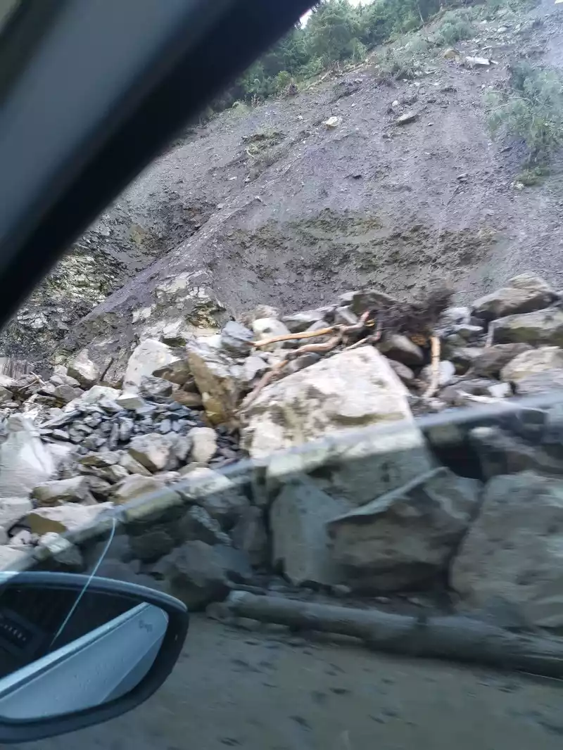 Along the way, I saw landslides and falling rocks, and I was still a little scared.