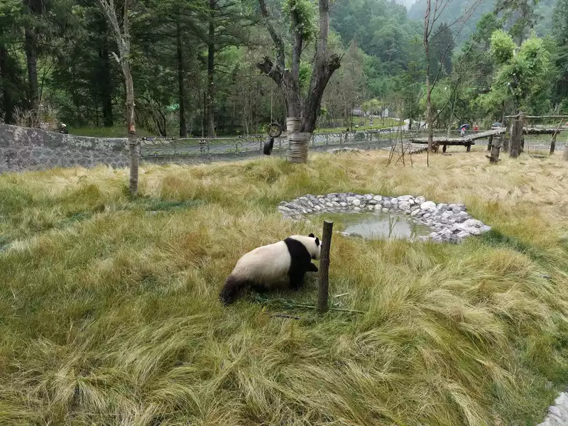 Yesterday, the character broke out, and the Jiuzhaigou that had been raining for half a month cleared up, allowing us to enjoy the landscape of Jiuzhai, the big and round moon at night, and made me regret not deciding on the tickets for Jiuzhaigou today, but it rained heavily today, and the rain finally stopped at noon, and I was going to choose the fairy pool to play. But considering the weather and the similarity between the fairy pool and the yellow dragon, I decided to go to the panda base, and it just so happened that my son also liked national treasures. It turns out that our choice is correct, the panda park here is not like the panda park in Chengdu with high walls and a large garden, here you can observe the pandas up close, so cute!