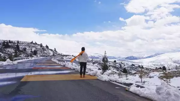 Next to Kangding Airport Road, attracted by the heavy snow tens of centimeters high, I got out of the car to take
