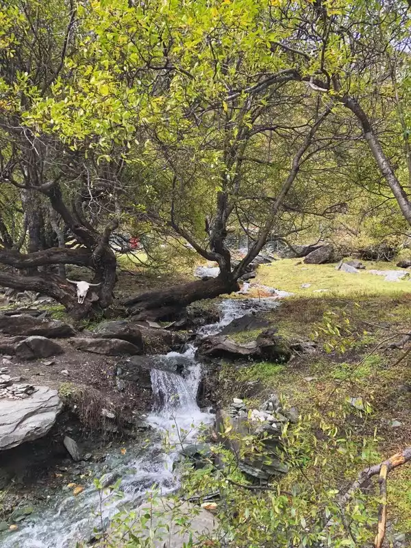 This place has no name, There is a boundary monument, a small terrace, occupied by some Tibetans,