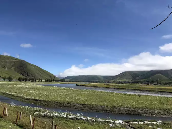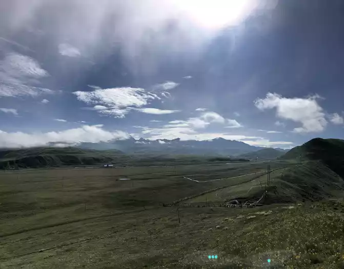 Return along National Highway 248 the next day, passing through Tagong Grassland. The road from Bamei to Tagong is a grassland on a plateau, where there is abundant water, gurgling streams, and herds of cattle and sheep.It was dark the night before, so I couldn't enjoy the view. In the morning, the sun rises, the fog gradually dissipates, and the beautiful scenery on both sides of the road is presented one by one, so we slow down and enjoy the beautiful scenery along the way. Park and climb to the top of the hill in the Tagong grassland, where the beautiful scenery of the grassland is in full view, and the Yala Snow Mountain in the distance also shows its true face.