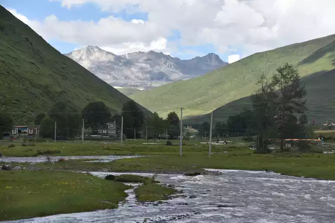 There are three ditches in Siguniang Mountain: Shuangqiaogou, Changpinggou and Haizigou. The scenery of Shuangqiaogou is the most beautiful, but the road in Shuangqiaogou Scenic Area was washed away by the flood on June 27 and was closed and not yet open, so we had to choose to go to Changpinggou. Our hotel is just in Changping Village at the mouth of Changpinggou, only about 300 meters away from the Changpinggou ticket office. Why did we choose a hotel in Changping Village? The reason is that the low potential here is wider than that of Shuangqiaogou, which is convenient for parking and there are more hotels; In addition, we are also worried about mudslides on rainy days, so we look for hotels located in open areas for safety.