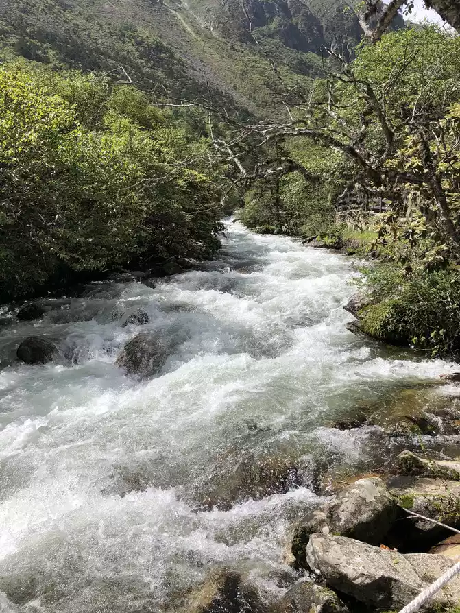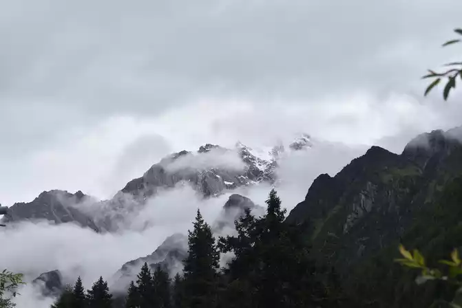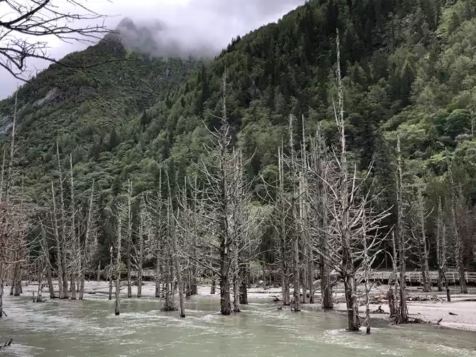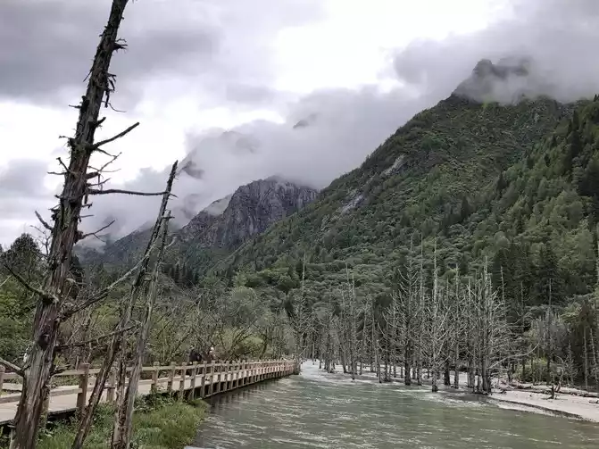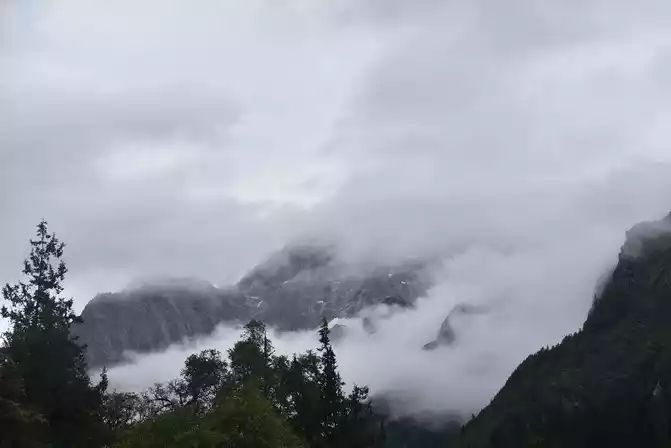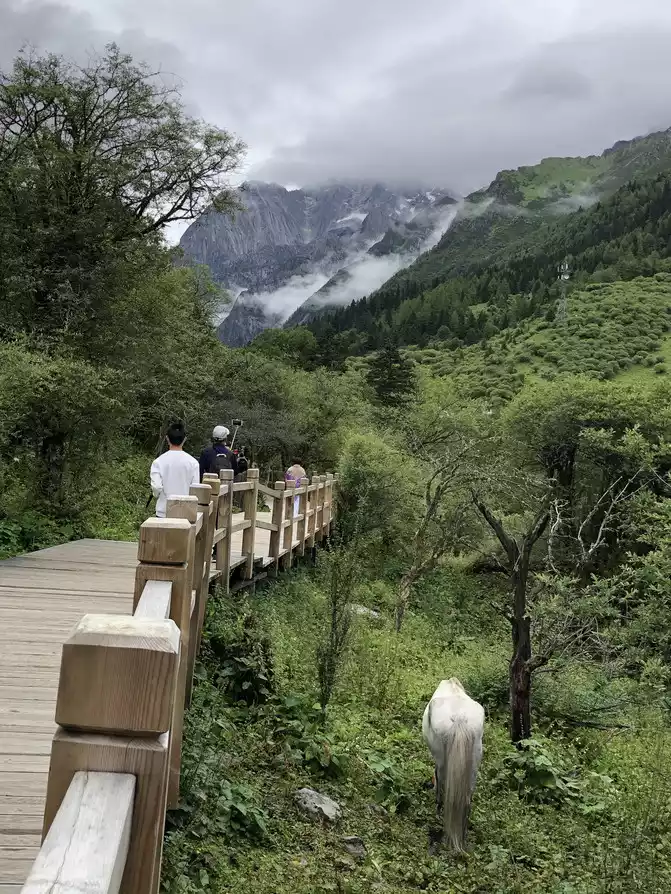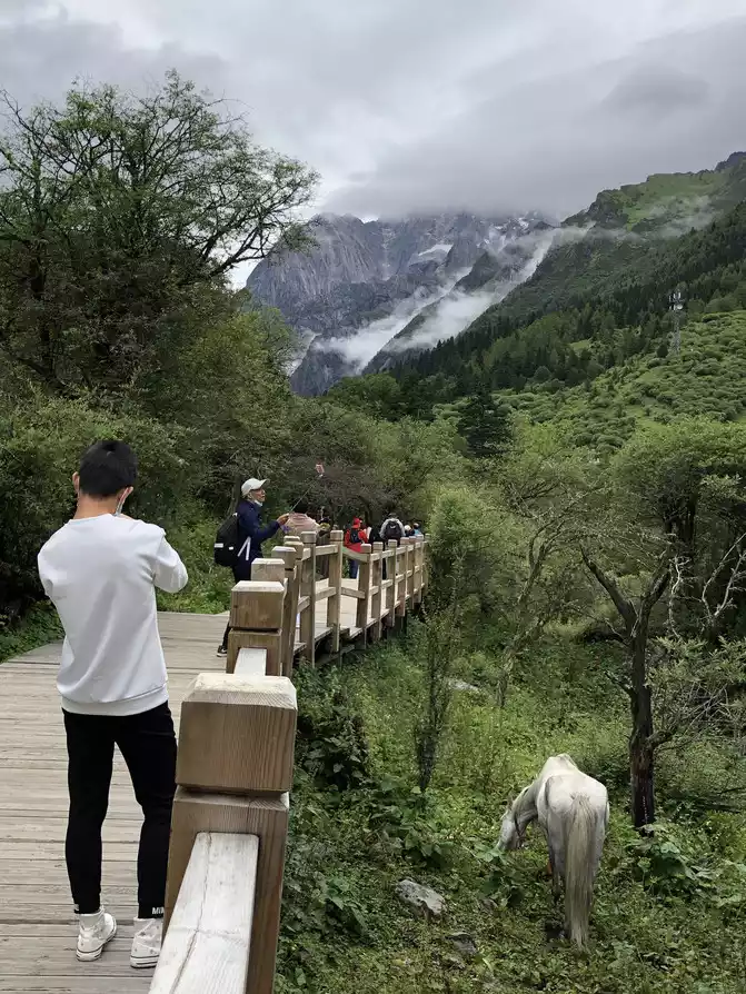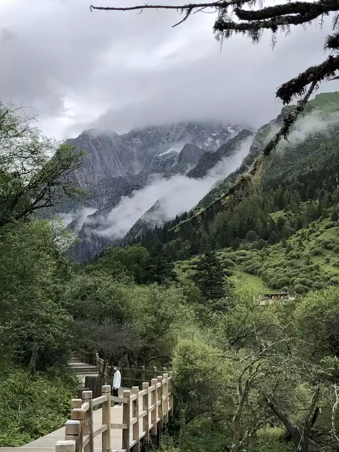 Siguniang Mountain is located in Rilong Town, Xiaojin County, Aba Prefecture, and is composed of 4 peaks covered with snow for many years, like the first batch of four handsome girls with white gauze makeup. It stands on the two galaxies of Changpinggou and Haizigou in turn, and the highest peak, Yaomei Peak, is 6,250 meters above sea level.Get off the sightseeing bus, enter the plank road, go upstream along the water flow of Changpinggou, pass by the Chongchongjiao Waterfall, dry tree beach, and enjoy the water, waterfalls, primeval forests and snow-capped mountains along the way. The whole journey takes 5~6 hours, and there are no restaurants or canteens in the scenic area. We have dry food and water on hand to replenish energy and water during breaks. It's a bit of a pity that the snow-capped mountains have always been foggy, and the girls are shy and always wear veils, which failed to let us see the beauty. We finished the tour at 2 o'clock in the afternoon, took the sightseeing bus to the door of the hotel, and had dinner at the hotel restaurant in the evening, and the food was wild mushroom chicken hot pot.