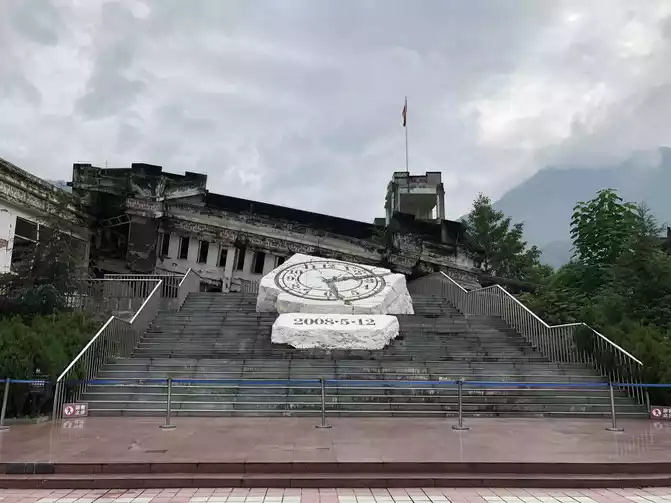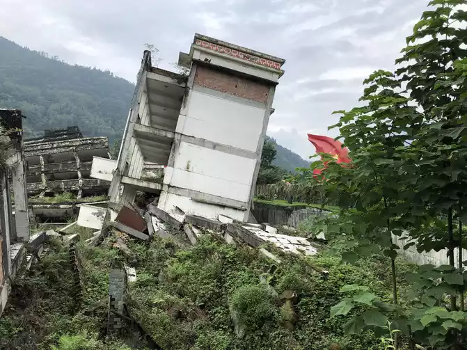 next morning, after breakfast at the hotel restaurant, after about half an hour's drive, we got off the Duwen Expressway to Yingxiu Town.Yingxiu was severely damaged in the 2008 earthquake, and all the houses were basically collapsed to the ground, leaving Xuankou Middle School, which was slightly damaged, as the epicenter site. The site is free to visit and has a special explanation. I am very happy to see the new Yingxiu Town built with the aid of Dongguan, Guangdong, with well-planned roads, clean streets, beautiful houses, small courtyards, and flowers and plants. Many houses have opened homestays for tourists to live and play.