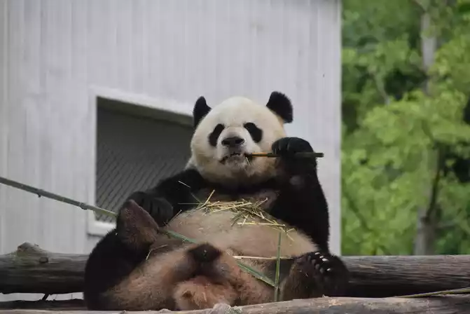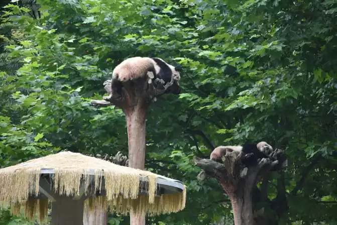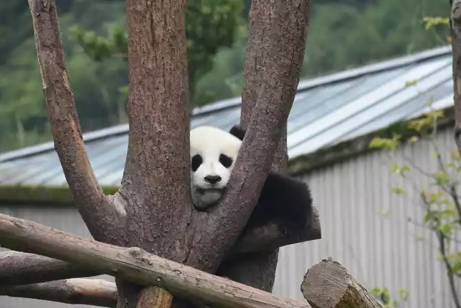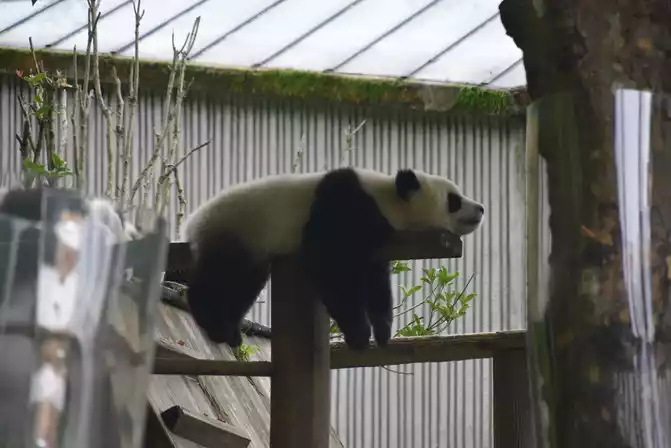 The panda base is divided into a giant panda breeding and breeding visit area, a captive giant panda rewilding training area and a wild release area, as well as a panda museum. What we can visit are the breeding visit area and the museum. There are many pandas here, and since our arrival time is close to 11 o'clock, many pandas have already eaten and slept, and some are still eating bamboo and grass. Whether they are eating or sleeping, the cuteness of the babies is very attractive.