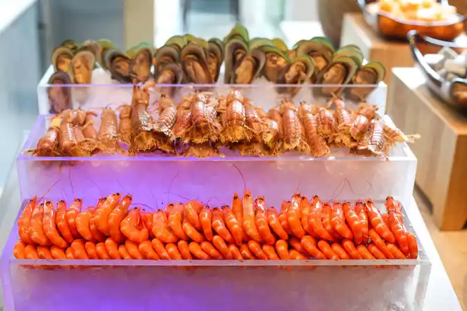 Seafood The most popular thing about a buffet must be a variety of seafood. There are many types of seafood here, from sashimi to cold cuts to tempura, and the seafood is all very fresh.