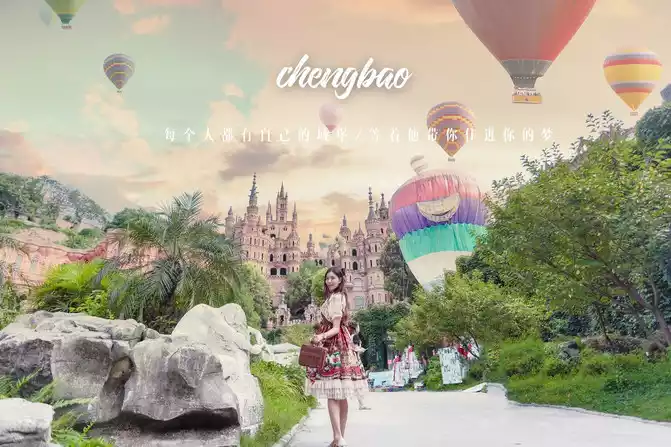 garden between the castles is also full of various fairy tale elements, whether it is sculptures or huge hot air balloons, which make people feel like they are in a fairy tale world, which is very wonderful and interesting.