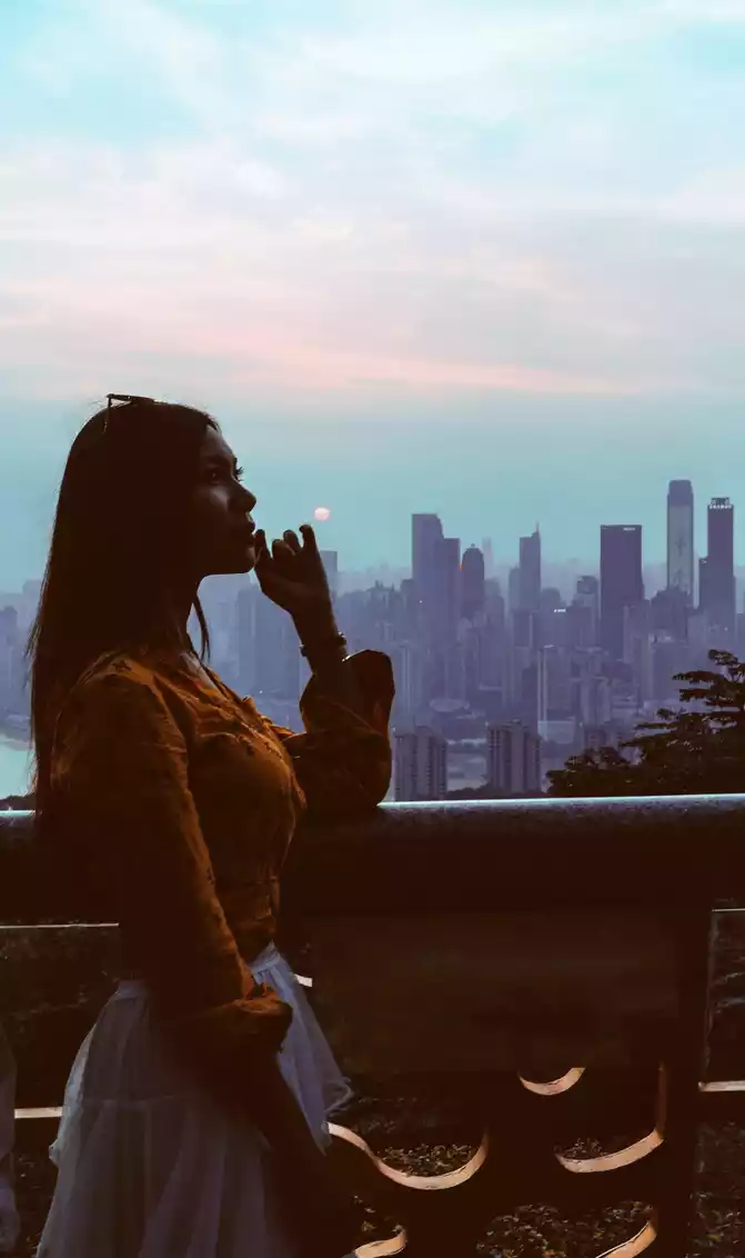 On the observation deck on the top floor, you can see the scenery of the entire Yuzhong District, come here, watch the sunset go down, and watch the lights of Yuzhong District turn on. The lights make the sky over the city and the river surface here bright, which is very charming.