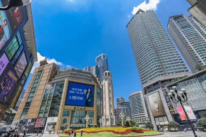 In Jiefangbei Pedestrian Street, you can see various international brand stores, which is a must-see for those who like to shop.