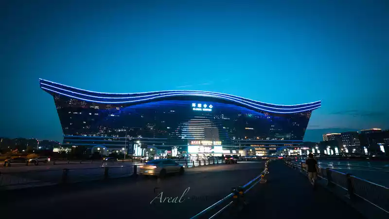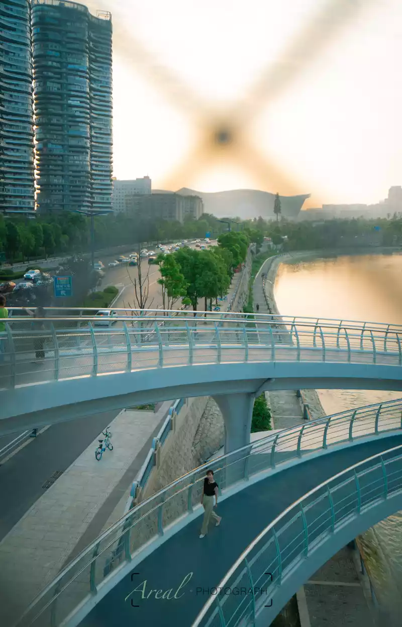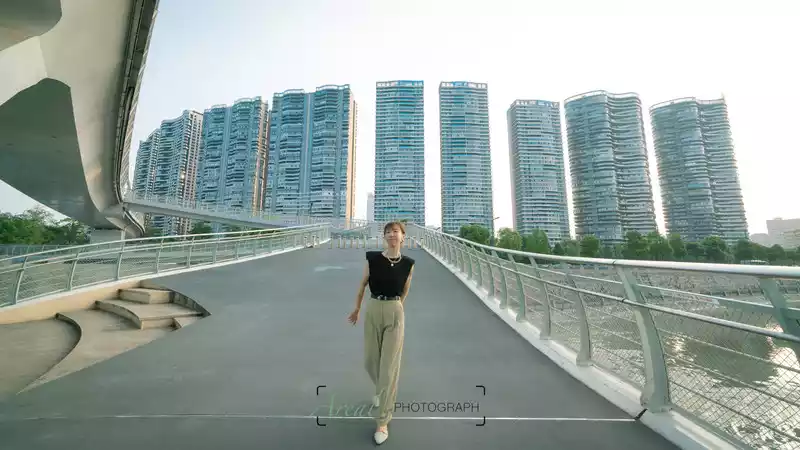 I see a lot of photos taken after the bridge lights are on, full of cool futuristic feel. But we can't wait for that time, and we are walking all the way to the New Century Global Center.