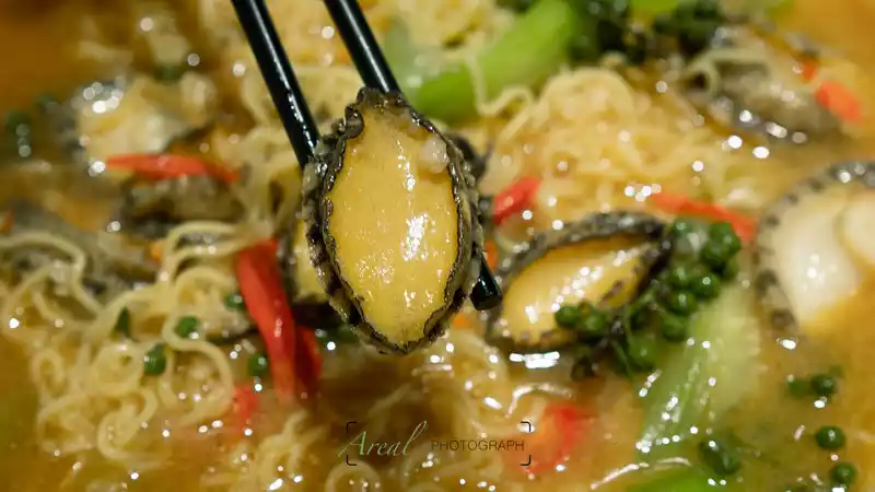 Baked fresh abalone on paper is another very ceremonial dish, the taste of the small abalone is smooth and crispy, but I have no obsession with abalone, However, the instant noodles that absorb the flavor of rattan pepper in the soup base have become my healing system.