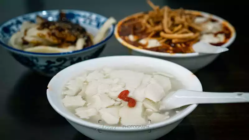 steamed tofu pudding adds a crispy texture to the smooth and spicy tofu pudding; Zhongshui dumplings are a mixture of meat and chili flavor, the spiciness is not eaten a little, they are all fragrant; Although the sweet water surface is slightly inferior to Zhang Lao Er at the mouth of the cave, it is also delicious, and finally a bowl of ice and sweet mash tofu pudding is used as an ending, and the happiness of life instantly reaches its peak.