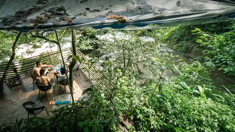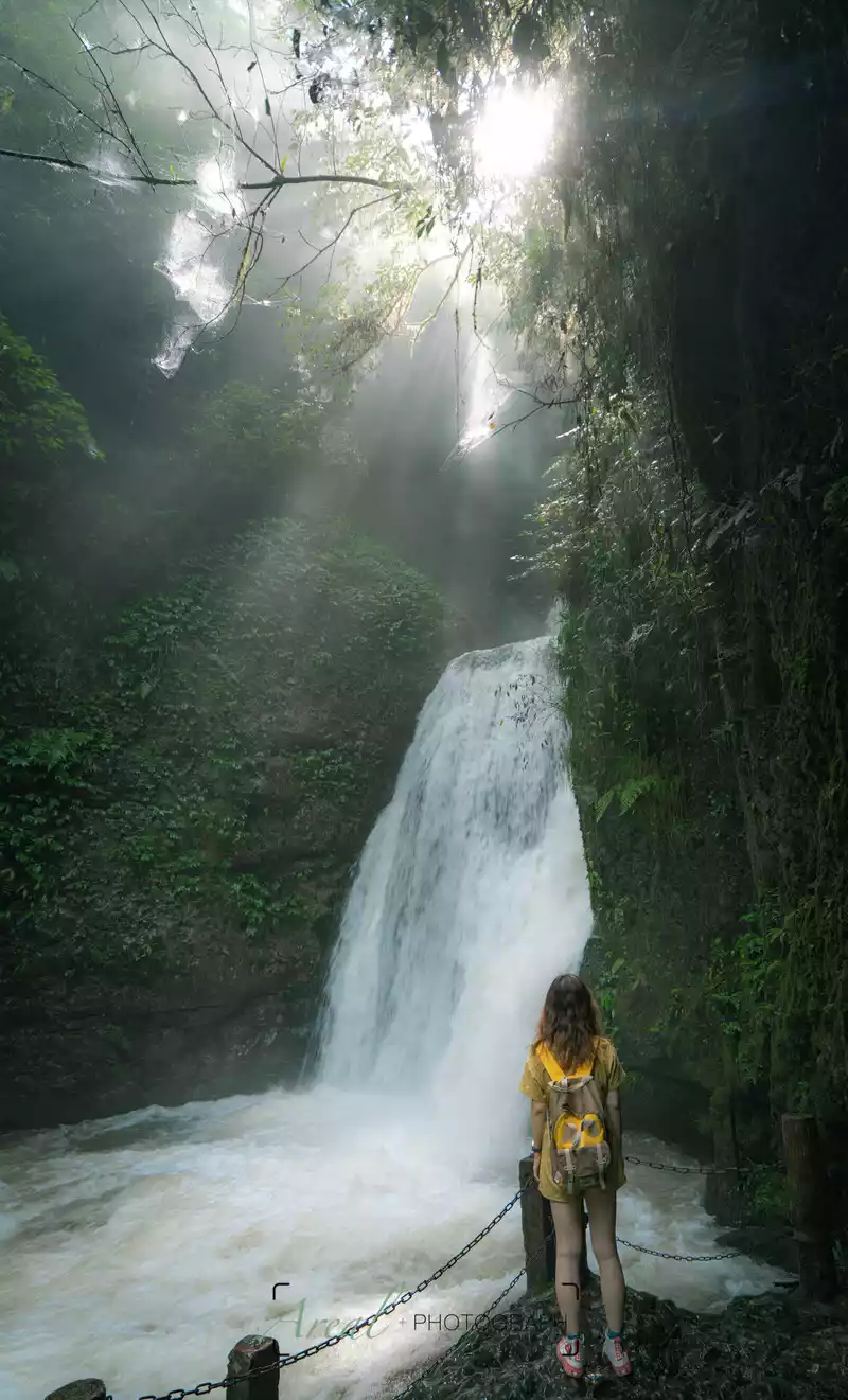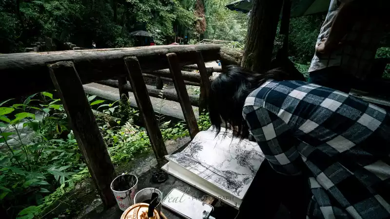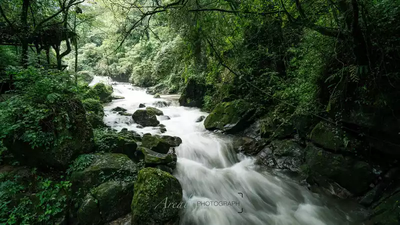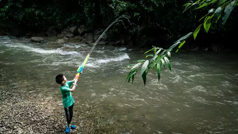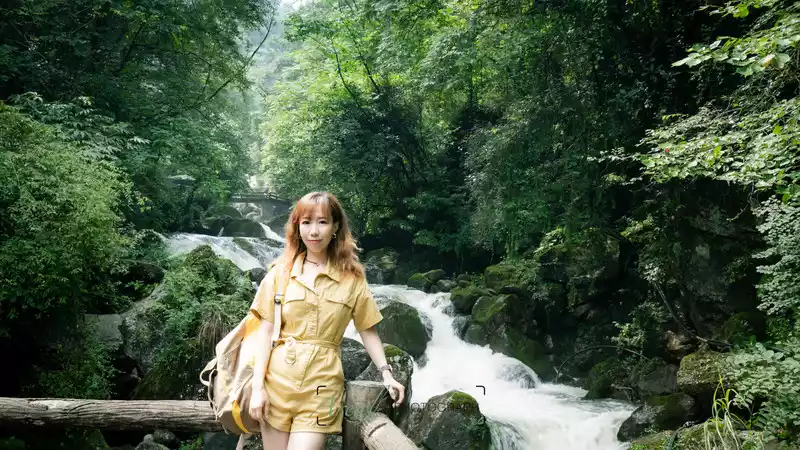 large and small waterfalls accompanied all the way, and the singing of "Wow Lala" echoed in the valley, which was very cool to listen to; stalls selling roasted sausages and roasted corn continue to deliver aroma; There are people chatting and drinking tea by the riverbank; The children are happy to play in the water, and even the dogs can run unrestrained...... The spiritual energy of heaven and earth and the fireworks of the world gather here, no wonder Bai Suzhen practices here.