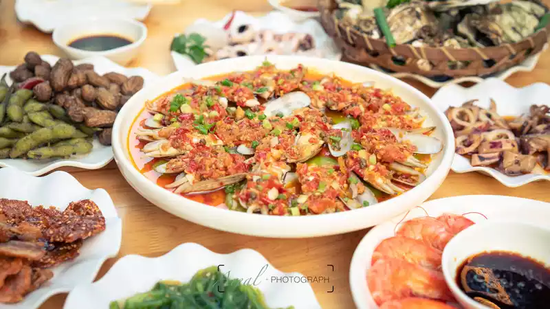 Standing at the entrance of the vegetable market, you can see the signboard, one side is the kitchen, and the other side is the big tent propped up, which spreads outside if it can't be placed in the tent. Fortunately, it is close to sunset, although the craze has not yet dissipated, but it is no longer sunny, the market is closed, except for the residents living in it, there are not many passers-by walking back and forth, but without exception they will look sideways at the table full of seafood.