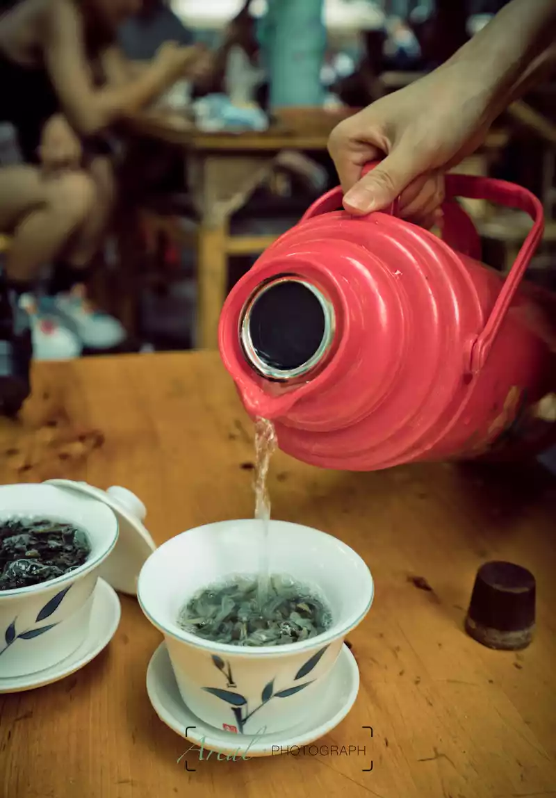 At this moment, I am sitting in the Heming Teahouse, time seems to have been stolen, the water in the thermos is tilted out, as if it is a stretched time, the tea leaves in the cup "roll and the clouds" are like a hypnotic film, coupled with the sound of "bells" in my ears from time to time, if it is not for the fatigue, I can fall asleep in a moment. "Stealing half a day of leisure" is already my blessing.