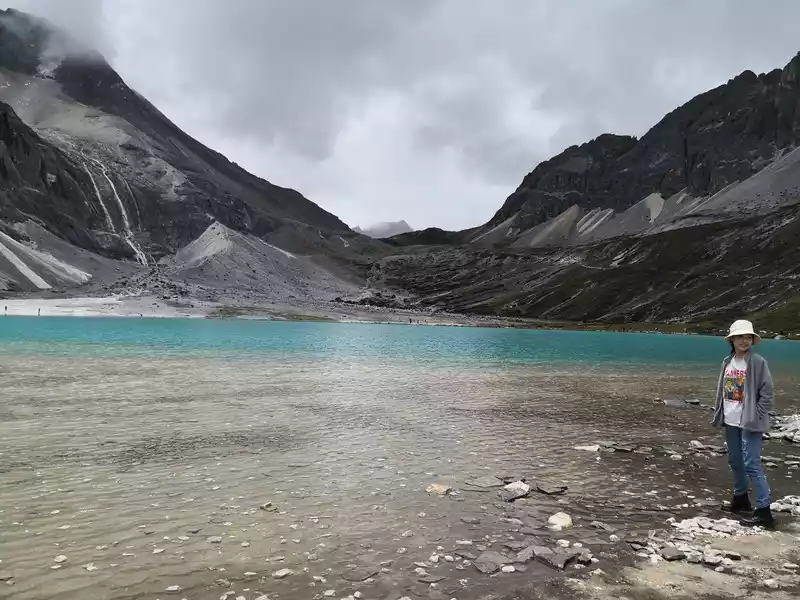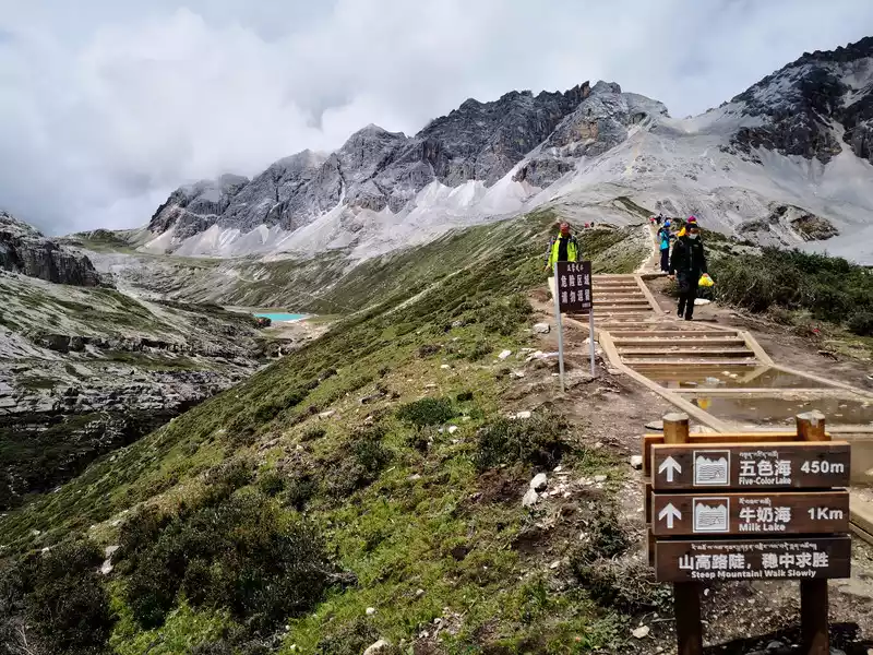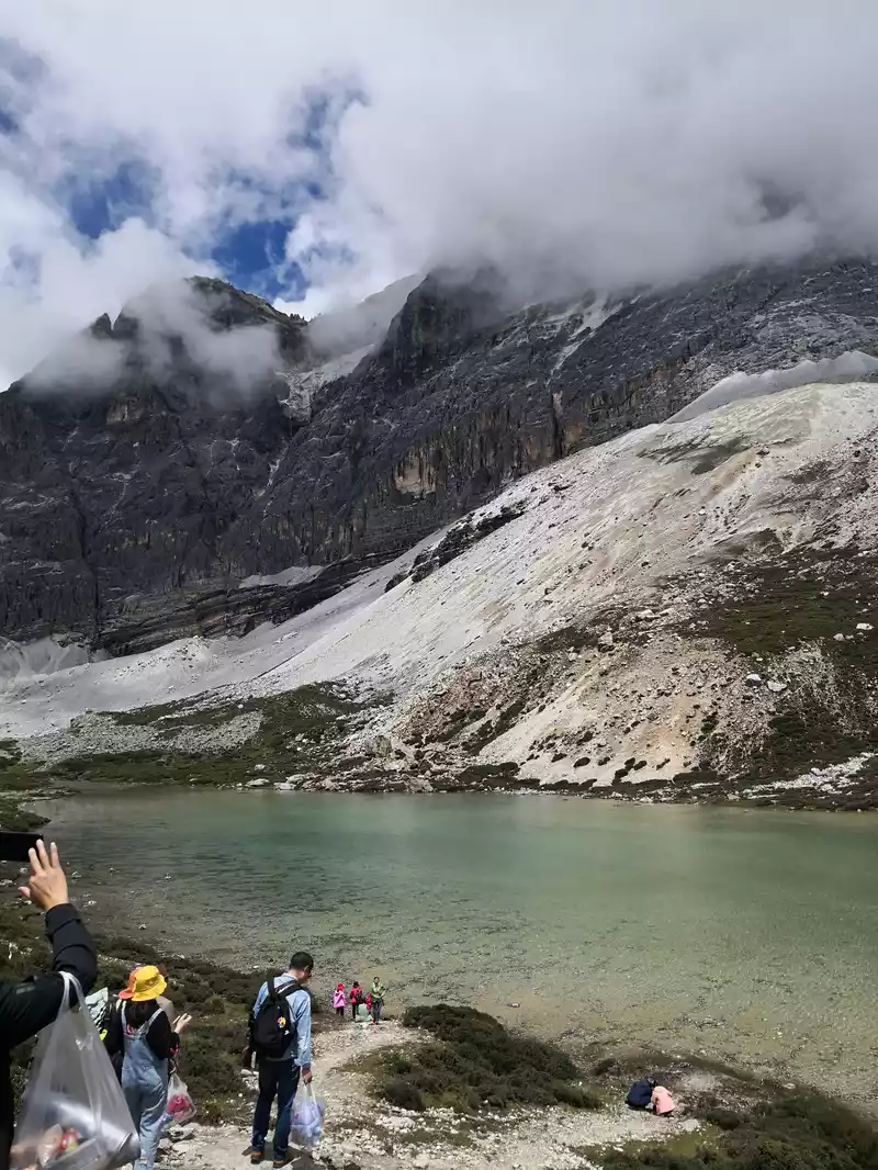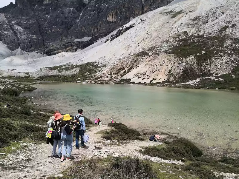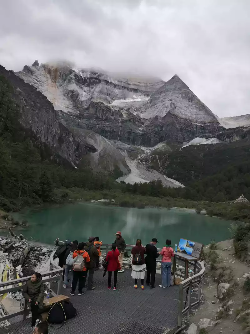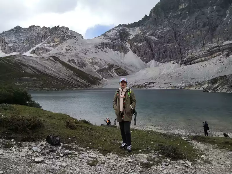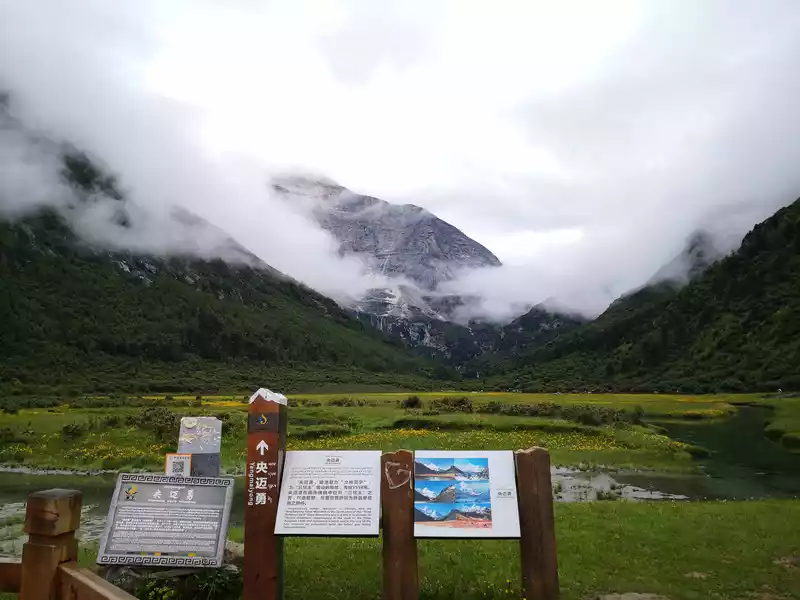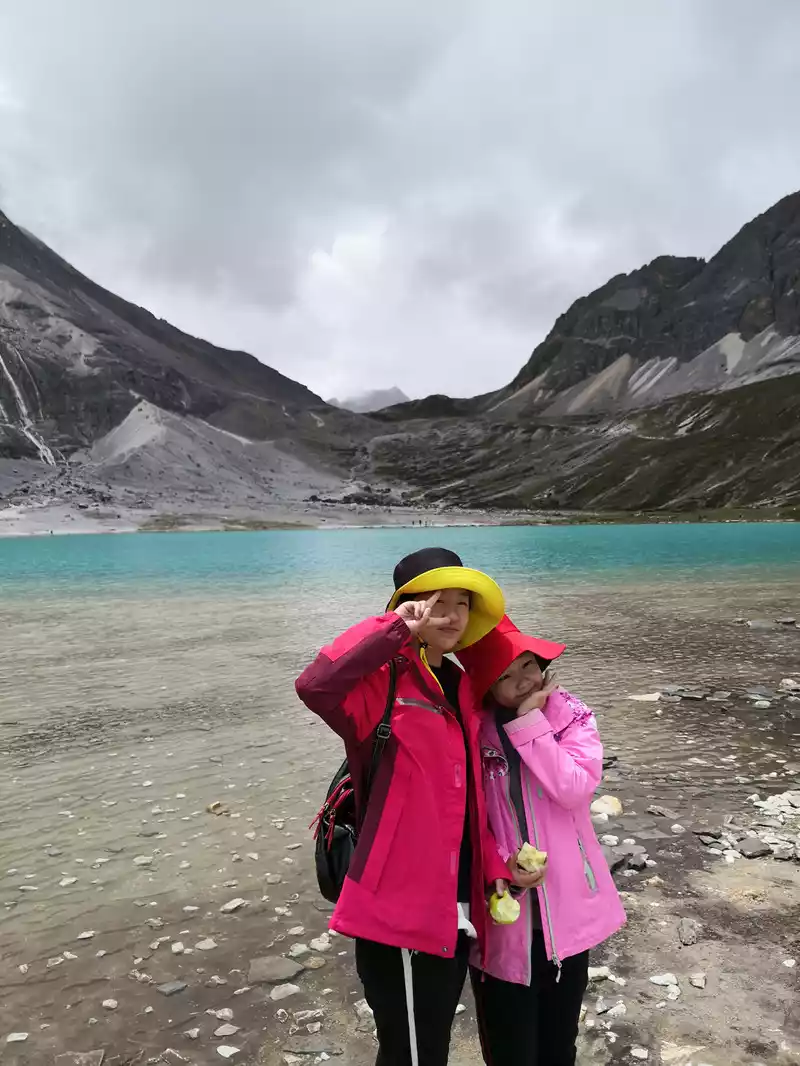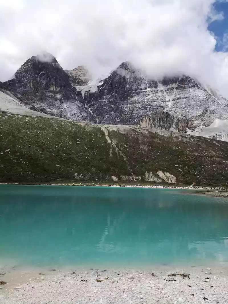 The long line is to take a battery car to Luorong Cattle Farm in Chonggu Meadow, and then start to hike 5 kilometers to the final point, which is also what we are looking forward to, the most beautiful milk sea and five-color sea. But today the weather is beautiful, and the sun shines on the snow-capped mountains. The beginning of the trip was still to take a sightseeing bus like yesterday, arrive at Zha Guanbeng, walk to Chonggu rest station to buy a ticket and take a battery car, and after a 20-minute drive to Luorong Cattle Farm. When I came to the Luorong Cattle Farm, it was 9:30 a.m., and when I looked up, I saw the Yangmai Yong Sacred Mountain in the Three Lords of the Sacred Mountain, which means "Manjushri Bodhisattva", representing wisdom. The large grassland below is dotted with small golden flowers, green, yellow and snow-capped mountains are mixed, and the beauty of the world is presented here. The further you go, the more the pace of climbing, the higher and higher the altitude, the steeper and steeper, the first section of about 2 kilometers can be ridden forward, but we still give up because we are afraid that the horseback riding will increase the height. Our family encouraged and supported each other to move forward, uncomfortable, stopped to take two breaths of oxygen, and looked at the beautiful and spectacular scenery along the way, so that we came all the way to the desperate slope, this slope was extremely steep, we had to take our time, finally climbed to the top of the slope, I thought victory was just around the corner, but when I looked up, there was a higher steep slope, the mood at that time could not be described in words, give up, not reconciled, continue, looking at the towering hillside, I was a little afraid. But life is like this, whether it is good or bad, you have to make a choice that you think is appropriate at the moment, so our family chooses to continue. There is a fork in the road on the Despair Slope, a flat road on the left leads to the Milk Sea, and a steep road on the right leads to the Sea of Five Colors. We choose to be bitter first and then sweet, and walk the five-colored sea. On the way to the top, the second sister suddenly shouted loudly, and I looked up and saw that two rock sheep were running fast on the opposite mountain. I was about to pick up my DSLR to take a picture of them, but they were long gone. After a short period of excitement, we reached the top of the mountain and saw a sea, but not a five-colored sea, we took a short break and walked forward, and the five-colored sea appeared in front of us. The five-color sea is also known as Deng Chongcuo, the relic sea also means auspicious sea, the five-color sea is named after the refraction of light, its real name is "Shan Zengcuo", it is located between Xiannai Ri and Yang Maiyong, at an altitude of 4,700 meters, the lake surface is round. The snow-capped mountains reflect the lake, presenting fantastic colors. While admiring her beauty, it rained lightly, and the raindrops fell on the water, like jumping elves, moving on the sacred lake, but the rain stopped after a while. Standing on the slope and looking down to the left, a milky blue, moon-like sea appeared in front of us, she was the sea of milk. Milk Sea, also known as Orongcuo, 4,500 meters above sea level, ancient glacial lake, shaped like water droplets, surrounded by snow-capped mountains, the lake water is clear and blue, and is famous for its exquisite and elegant water color emerald blue. The milk sea is in the shape of a scallop in the mountain hollow of Yangmaiyong, with blue snow water in the middle and a circle of milky white surrounded by this circle of milky white, which is roughly the origin of the name of the milk sea. The water near the shore is slightly black, and the bottom is the deposition of ancient plants, the light green area inside, and the deep blue water surface, which is translucent. The sea flows slightly, and the sunlight keeps passing over it through the clouds, so it also changes its brilliance like a jewel, sometimes gloomy, sometimes dazzling, sometimes erratic. The edge of the sea is filled with patches of meadows and broken leaves, soft, like a green flannel, carefully caring for this gem. The meadow is surrounded by hard stone walls and sand and gravel beaches, which are particularly cold. She is like a plateau pearl guarded by Yang Maiyong. We went down to get close and appreciated her beauty around the sea of milk. There is beauty from all angles, there is no superfluous language, only the sound of the SLR camera "clicking", which is a cheer for her beauty. At about three o'clock in the afternoon, we walked back, and the way down the mountain seemed easier and shorter. When we were about to arrive at the Luorong Cattle Farm, we once again saw the two rock sheep we saw on the five-colored seamount on the roadside slope, and now they were very well-behaved, allowing us to keep filming and watching. Going down to the cattle farm, Yang Maiyong's whole picture became clear, allowing us to admire her to the fullest. Today's itinerary can be described as "hell of the body, paradise of the eyes", go back to the hotel to have a good night's sleep, and maybe you can still dream of the rare beauty of this life!