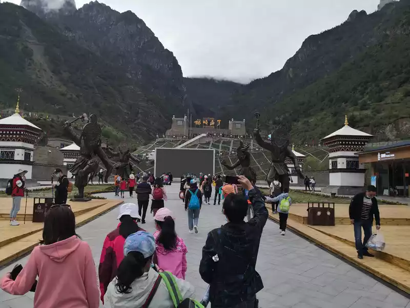 The wooden barrel Yayu we ate for lunch in Ya'an, this time finally allowed us to find the "sword" on Yayu's head. Continuing on, we arrived and toured Luding Bridge in the afternoon. Luding Bridge is located in the west of Luding County, Ganzi Tibetan Autonomous Prefecture, Sichuan Province, often called the Dadu River Iron Cable Bridge, which is the gateway to Ganzi Prefecture, the throat of Kangzi transportation, and an important passage from the interior of Sichuan to the Kangzang Plateau. The Luding Bridge bridge body is composed of 13 iron chains with thick bowl mouths, including 9 bottom chains and 4 handrails, each of which is interlocked by 862 to 997 iron rings made by hand from wrought iron, with a total weight of more than 21 tons. The bottom chain is covered with wooden planks, and the handrail and the bottom chain are connected by small iron chains, so that the 13 chains are a whole. The abutment is the foundation of the fixed ground dragon pile and the sleeping dragon pile; The bridge pavilion is an ancient Qing style building. On the other side of the river, the ancient building on the hillside is the historic Guanyin Pavilion, which is a temple. However, when the Red Army flew to capture the Luding Bridge, it was the Red Army's "Flying Luding Bridge Point Headquarters" and the artillery and machine gun positions, and it was under its cover that the 22 warriors of the Red Army bravely climbed over the 13 iron cables, shattering Chiang Kai-shek's dream of making Zhu Mao "become the second Shi Dakai". Walking on the bridge, the turbulent Dadu River under your feet, the sound of the wind howling in your ears and the screams of the crowd make people shiver. The tour took nearly two hours, and we left Luding and continued to today's terminal, Moxi Ancient Town. The ancient town of Moxi is built on a sloping high platform surrounded by mountains on the east, west, and north sides, and the entrance to the ancient town diverges into two roads. One leads to the ancient town, the other passes through the new city, and converges around the city to form a circle. In the ancient town paved with stone slabs, the buildings are gathered next to each other on both sides of the road. The more distinctive is the Catholic church built by French missionaries in 1918. In 1935, the Red Army's Long March passed through this place, and Chairman Mao Zedong stayed in the Catholic church and held the famous Moxi Conference. Subsequently, the Red Army snatched the Luding Bridge, and Chairman Mao followed the main force of the Red Army across the Luding Bridge. When we came here, it was about 5 o'clock in the afternoon, we visited the Catholic Church, the Moxi Red Army Long March Memorial Hall, and chose a highly acclaimed yak soup pot in the ancient town in the evening, which tasted quite good. Return to the hostel in the evening to rest and prepare for tomorrow's trip to Hailuogou.