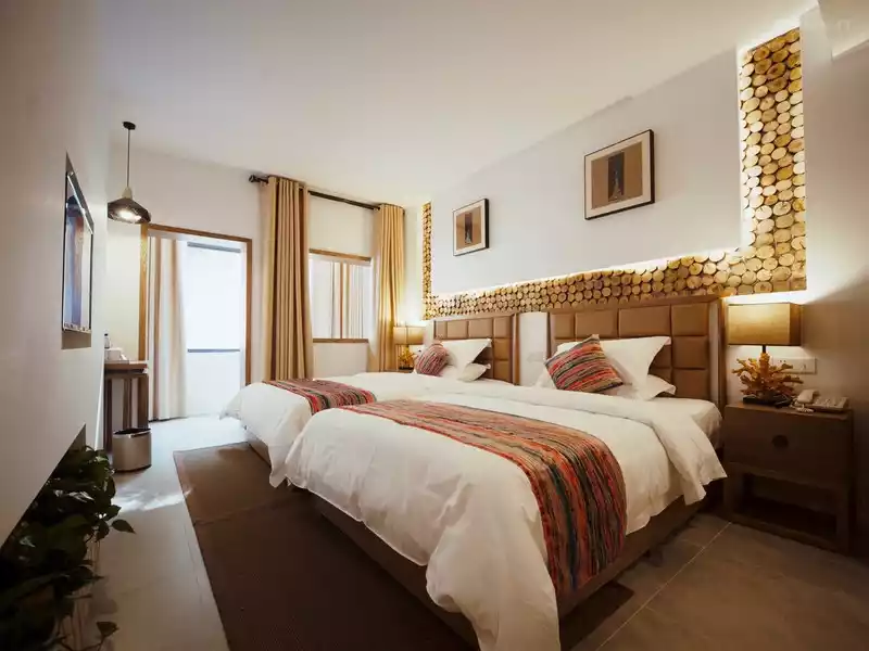 At 4:30 p.m. on July 23, my nephew drove to pick me up, arrived at Longdongbao Airport before 5 o'clock, bought a delicious duck neck at the airport, the plane took off at 19:41, flew for more than an hour and arrived at Aba Jiuhuang Airport at 20:55, as soon as I left the airport, I saw that the tour guide who picked us up was wearing cotton clothes, wearing T-shirts and shorts, we rushed to the bus in a few steps, and drove from Jiuhuang Airport to checking into the hotel for nearly an hour and a half , which often makes large turns of 180°, from 3500 meters to 1900 meters above sea level, says it all. My son and I ate a box of instant noodles to rest, and I felt that I hadn't fallen asleep all night, and the bed was too hard!
