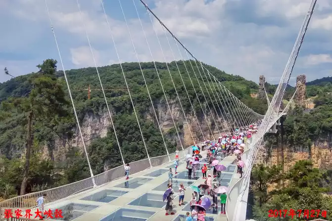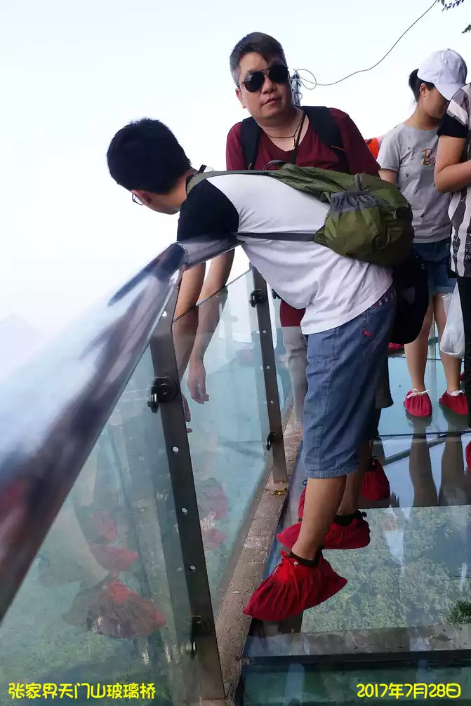 Get up at six o'clock in the morning on July 27, arrive at the meeting point of the tour group to Zhangjiajie at seven o'clock, and arrive at the gate of Zhangjiajie Grand Canyon after more than five hours, Zhangjiajie Grand Canyon Glass Bridge opened in October 2016, especially awesome, except for mobile phone mineral water and a carry-on bag can not bring anything, more strict than airport security check, even cameras can not be brought, after entering the ticket gate a few minutes later, arrive at the glass bridge, as for glass