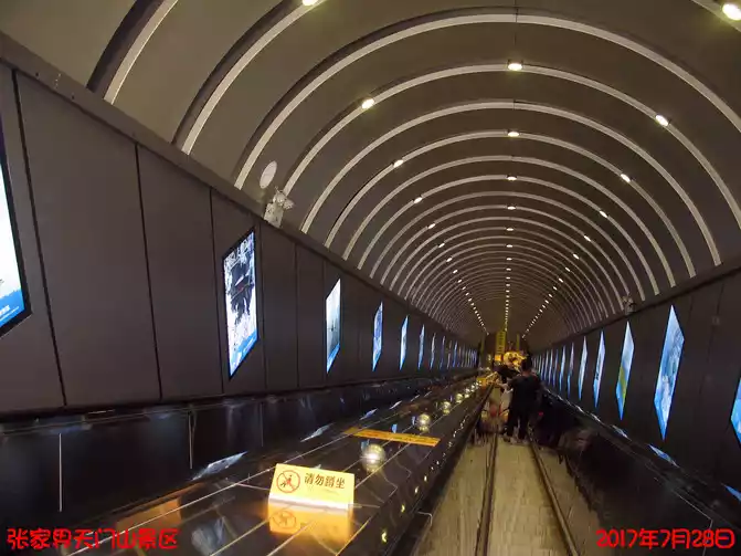 meters) through the mountain escalator to Tianmen Cave. After passing through Tianmen Cave, you can take 5 stages of the escalator to Tianmen or take the 999-story ladder to the square in front of Tianmen Cave, <