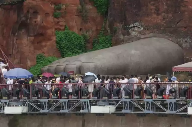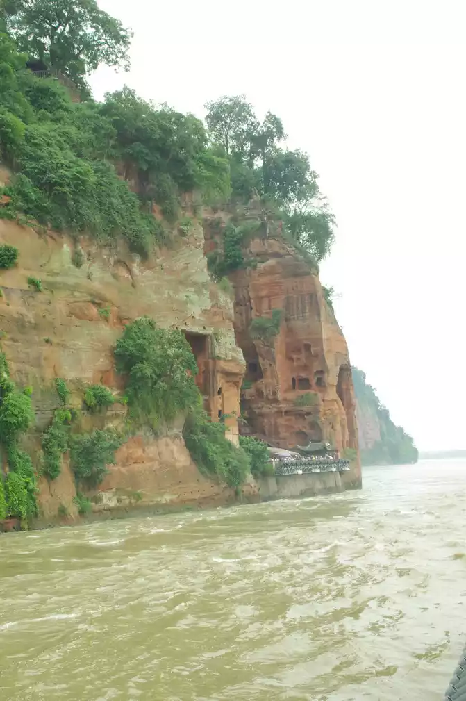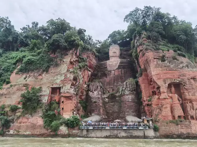 The cruise ship travels slowly on the Min River, and you can see the Big Buddha from a distance, and tourists stand on the deck of the cruise ship to watch. When the cruise ship arrives directly in front of the Big Buddha, the captain stops the boat for tourists to enjoy slowly.I saw that the Big Buddha was as high as the mountain, forming a condescending posture with the river and tourists, and with the surging Minjiang River, this momentum was really shocking. In this situation, I really want to sing a song "A Laugh in the Sea"!