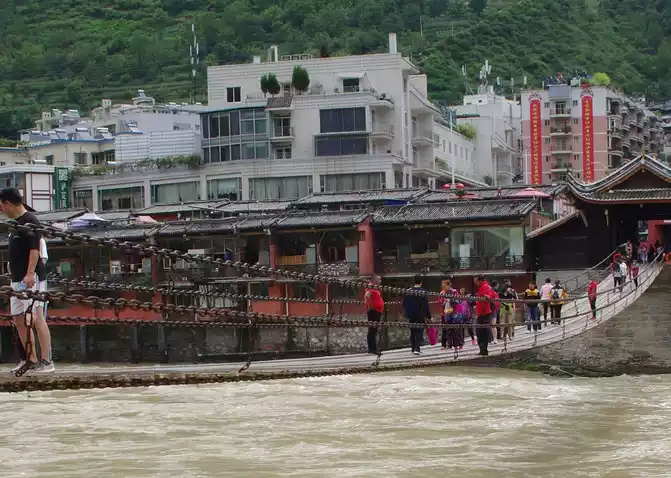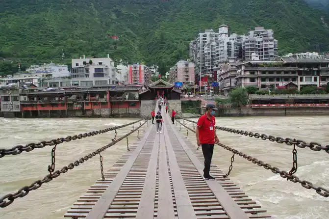Starting from Ya'an, it took more than an hour on the highway to arrive in Luding County. Leaving the highway, turn onto the national highway, parallel to the Dadu River, look out the window, and see the river rushing, the torrent crashing against the mountains or boulders on the shore, and the roar is endless. Along the national highway to Luding County, visit the red tourist attraction ---- Luding Bridge. In 1935, the Red Army's Long March came here and launched the famous battle of "flying to capture the Luding Bridge" with the Kuomintang defending enemy. I saw that on the river about 100 meters wide, the Dadu River rushed down and the torrents collided with each other, which was very dangerous. There are 9 large iron chains with a thick bowl mouth connected between the two sides, which is the Luding Bridge. There is a distance of twenty or thirty meters between the iron chain and the rushing river. The chains are covered with wooden planks to make it easy for visitors to walk. When the Red Army soldiers bravely seized this strategic point, the vanguard commando climbed on bare iron chains and fought fiercely with the enemy while crawling forward. It shows the difficulties and dangers at that time! Therefore, the victory of the Chinese revolution is really hard-won, and we should cherish it!