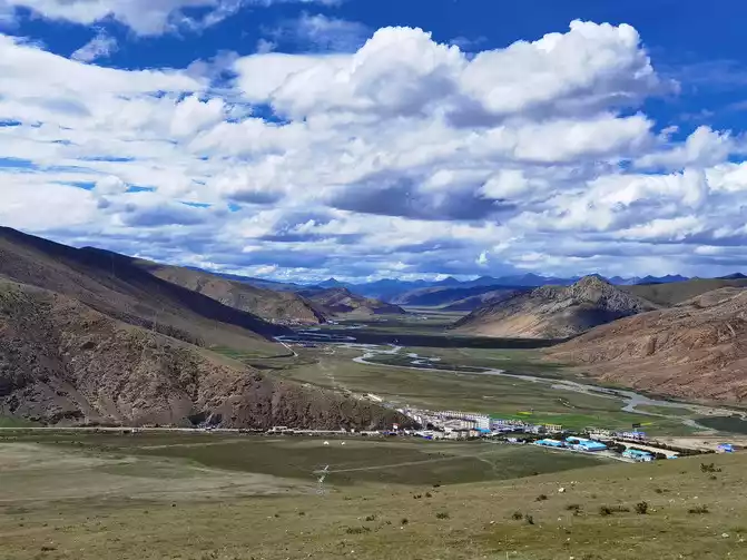 I had a bad rest last night in the case of altitude sickness, and I was finally looking forward to the arrival of dawn. Nagqu City is the intersection of National Highway 109 on the Qinghai-Tibet Line and National Highway 317 on the Sichuan-Tibet North Line. We chose National Highway 317 eastbound, all the way is a plateau area of 4~5 kilometers, the scenery is dominated by alpine meadows and some Tibetan buildings. In the section at the junction of Naqu and Suo County, the road surface is maintained in many places, with potholes, and driving is more time-consuming and energy-consuming. All the way through Baqing County and Dingqing County, it was almost dark when they arrived in Leiwuqi County, so they rested here.