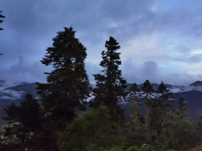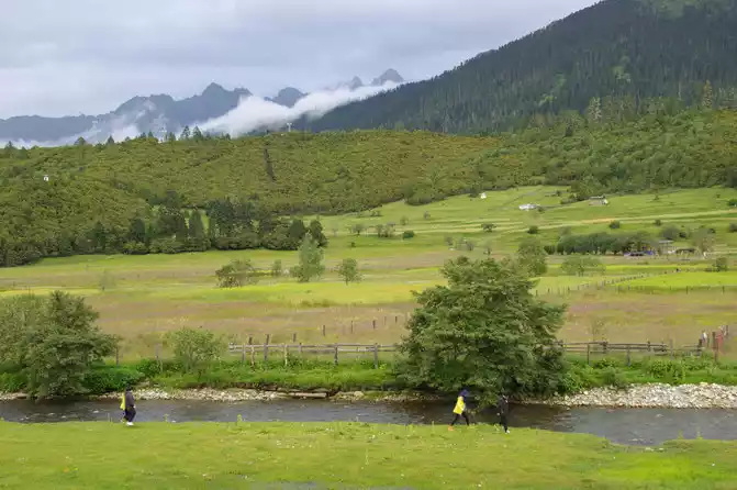 At the end of the tour, leave the scenic spot and continue westward, and there is another scenery on the side of the road. The road became gentle, tall pine trees lined the road, and in the distance, under the high mountains, highland barley fields, flower fields, meadows, and sheep were accompanied by farmhouses, as if they had entered the farms of the European continent. Soon after we traveled, we arrived in Bomi County, stayed here, and waited for the opening of traffic.