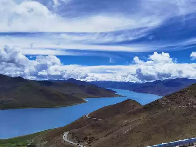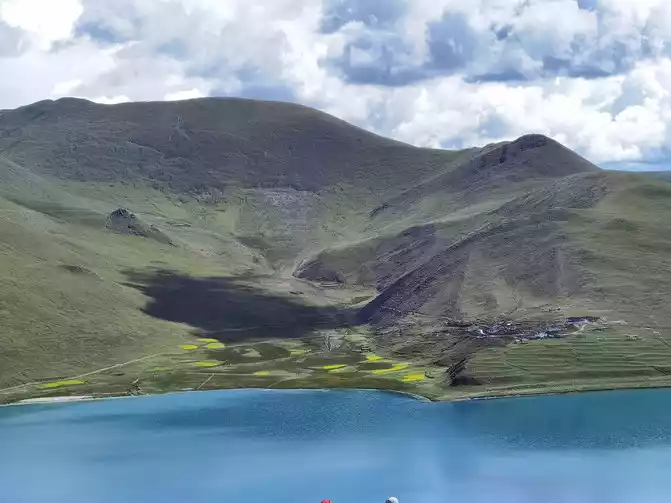 In the afternoon, we left the highway, passed through the inspection and quarantine station, and entered the city of Lhasa. It was still early, we studied the map and found that it was not far from Yangzhuo Yongcuo, so we set off directly to the scenic spot. More than 30 kilometers away from the scenic spot, there is a tourist service center. Buy a ticket here, then drive along National Highway 349, over the 5-kilometer-high Gangbala Pass, and you can see Yangzhuo Yongcuo in the distance. It is one of the three sacred lakes on the plateau in Tibet, and from a distance it looks like a sapphire set on a 4,400-meter-high ridge. Continuing to the lake, I saw that the lake water was blue, forming a color-coordinated and mysterious picture with the snow-capped mountains in the distance, the meadows nearby, and the rape flowers by the lake. We strolled around the lakeside observation deck, but walking up and down at an altitude of almost 5 kilometers was not an easy task, and after a while we were panting and pale! I had to slow down and take a few steps, but my eyes stared at the picture greedily. Then return the same way and go straight into Lhasa to rest.