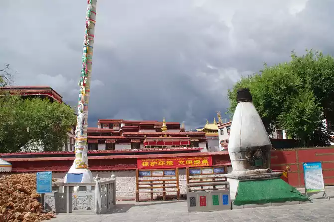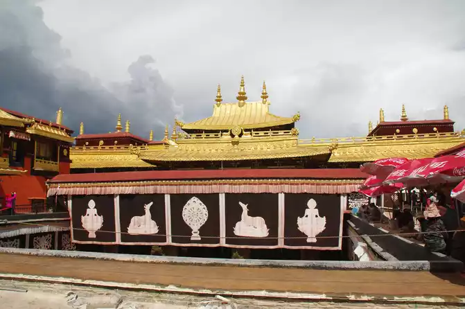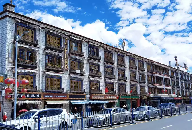 In the afternoon, we visited Jokhang Temple. This is a large Tibetan monastery built by Songtsen Gampo, a Tibetan power figure during the Tang Dynasty. Locals believe that Jokhang Temple is located in the heart of Tibetan Buddhist monasteries in China and the center of Buddhism in the world, so in their hearts, Jokhang Temple is very sacred. The temple is built very majesticly, its main hall sits east to west, and the center is dedicated to Shakyamuni Buddha. Surrounding the main hall is the small hall of the Buddhas and Bodhisattvas. Ghee lamps are lit everywhere in the temple, exuding a peculiar fragrance, which is different from the choking incense candles and smoke in the temples on the southeast coast. We visited the Buddha in the main hall, and then went to a few small halls to pay homage to the Buddhas, and then climbed to the rooftop on the second floor to see the main building of the temple, and then left the Jokhang Temple. During today's tour, our group invited a tour guide to explain, so that we could learn some knowledge about Tibetan Buddhism and precious buildings such as Jokhang Temple and Potala Palace, as well as folklore, etc., which was worth it.
