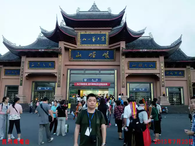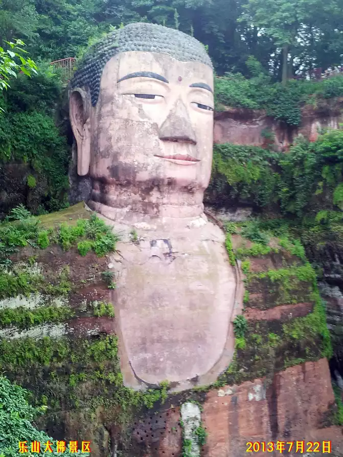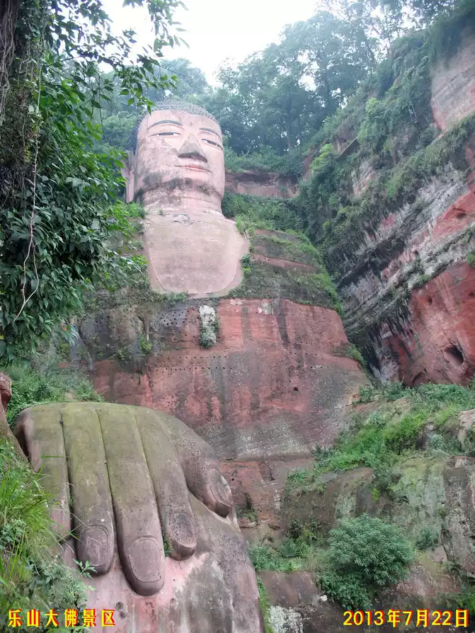 July 22, I started a two-day tour of Leshan Giant Buddha Emei Mountain with the booked tour group!Arrived at the entrance of the Leshan Giant Buddha at about 10 o'clock, the queue was long, and the slow flow of people walked along the plank road of the Big Buddha Bend to the foot of the Big Buddha, and then returned to the entrance along the plank road on the other side after playing. Arrive at the Oriental Buddha Capital at 2 noon, and then go to Meishan City.