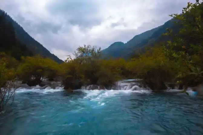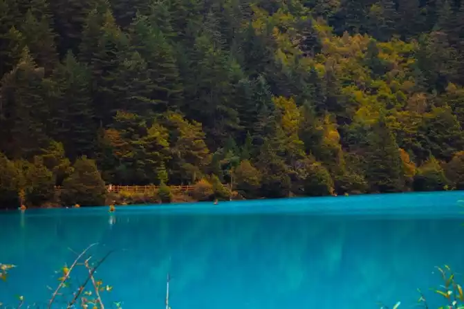 The Jiuzhai water that fell off the cliff was crowded together again, and they ran happily along the ravine, and the colors surged up on their bodies again. Only in Jiuzhai can you find many colors of water, even on tropical islands, they are not as colorful as here. Summer is gone, autumn is coming. The romantic autumn breeze is bound to bring a brilliant Jiuzhai, which is a more colorful color. Today's Jiuzhai is waiting for me, and I will also wait for your arrival. If I could choose an encounter, I would like it to be here.