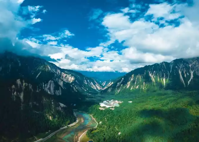 Some things are always very fateful, last year when I drove to create a style, I passed by Jiuzhaigou, that was the scenic spot was not open, so there was no need to stay. It coincided with the construction of roads in Jiuzhaigou, so I waited here for four hours, and the best time of the afternoon was arranged here by fate. And this time, I also visited here again in the afternoon sunny. The difference is that on my last visit a year ago, there were no scenic spots here, and there were not many artificial landscapes. It is plain and natural. Although Gan Haizi can be enjoyed on the side of the road and does not have to enter the scenic spot, there are a lot of new photo and check-in props in it, if you have a beautiful woman as a companion on your journey, then you should discuss it again.