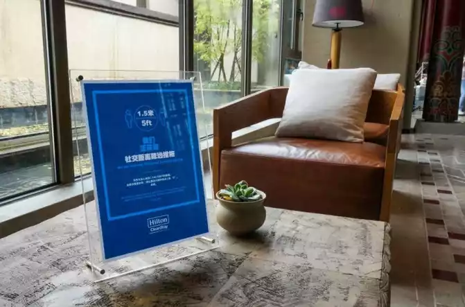 And this time choosing Hilton made me feel different from before, entering the hotel, there were significantly more hand sanitizers and disinfectant wipes in the public areas, and the sign next to it also reminded me to maintain safe social distancing. At the same time, there is also a seal on the door, as well as the TV remote control and electrical switches. It turns out that this is a new set of hygiene procedures implemented by Hilton to allow guests around the world to enjoy a cleaner and safer stay. It's called: "Clean and worry-free."