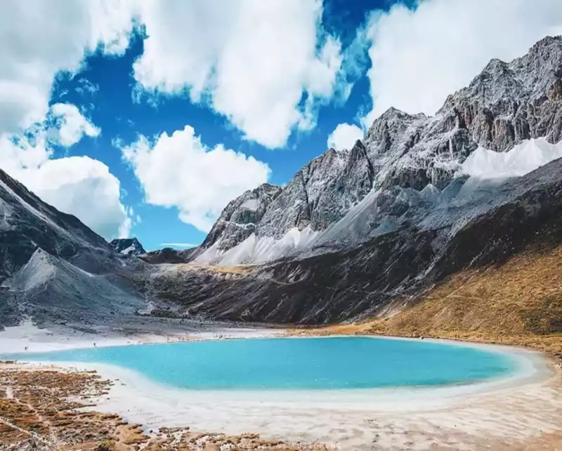 The third stop, Milk Sea, is located at the foot of Yangmaiyong Mountain, an ancient glacial lake with an area of 0.5 hectares and an altitude of 4,500 meters. Surrounded by snow-capped mountains, the lake is clear and blue, famous for its exquisite and elegant water color, and there is a large glacier above the milk sea. Legend has it that every year when the spring flowers bloom, the lake water will be as white as milk, so it is called the Milk Sea.