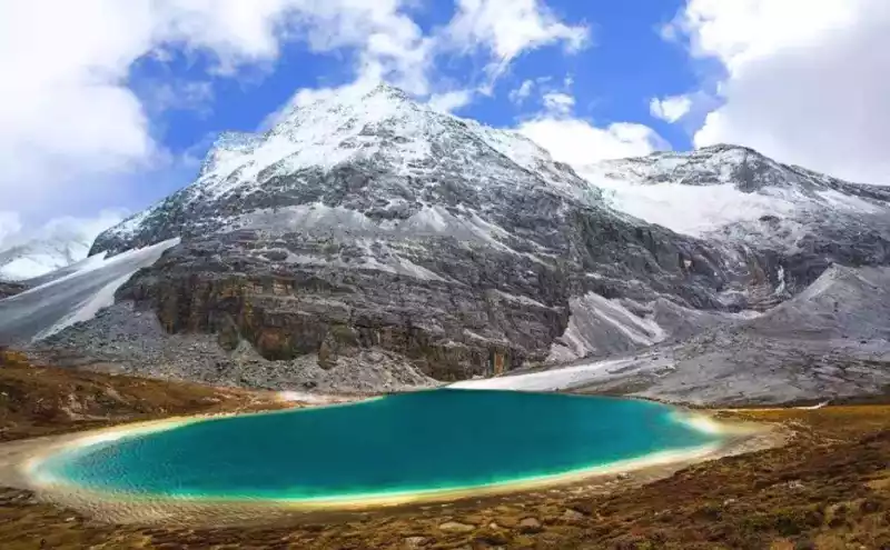 The modern ice valley extends down to the lakeside, and the snow-capped mountains reflect the lake, presenting fantastic colors. It is a famous sacred lake in Tibet, and the Buddhist scriptures praise the five-colored sea of Aden as famous as Tibet's Yangzhuo Yongcuo, and legend has it that it can "reenact history and predict the future". Spring and summer bloom, and it has become a sea of colors. The five-colored sea in autumn adds a new golden yellow, which is also colorful (the last two places did not climb up by themselves, here are the beautiful pictures of donkey friends for reference).