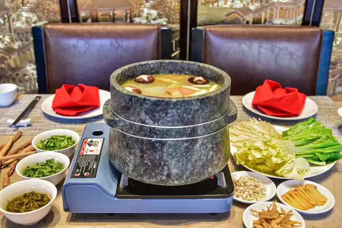 [Stone Pot Tibetan Fragrant Chicken] uses Motuo stone pot as a vessel, selects local Tibetan fragrant chicken, paired with delicious matsutake mushrooms and mushrooms, and cooks and boils over low heat, creating a pot of fresh meat tender and delicious, suitable for all ages, nourishing and nourishing the stomach.