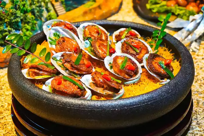 [Leek Raw Shell Live Abalone] On the plateau, it is not easy to eat such a fresh and tender abalone. Under the aroma of sauce and leeks, this delicacy is mouth-watering and tastes very good in the mouth.