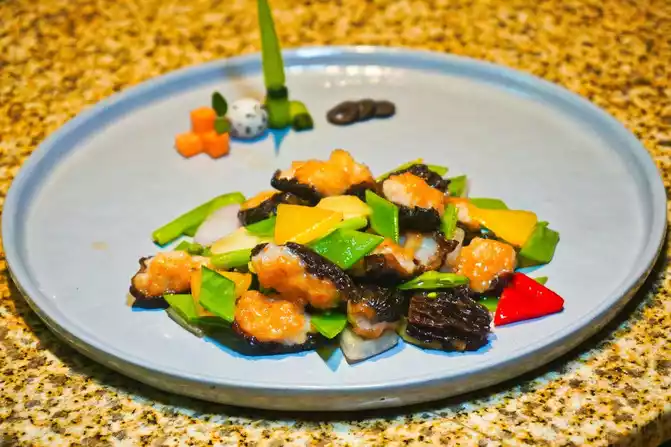 【Special Stir-fried Morels】Fresh morels, paired with smooth shrimp, stir-fried over high heat, the taste is refreshing and fragrant, and the color is attractive.