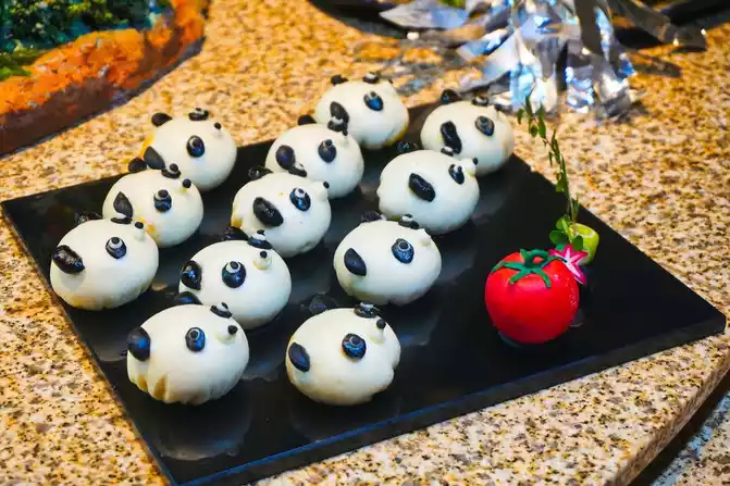 Panda Egg Yolk Bun] In the mythical Jiuzhai of the life of big-breasted cats, it is natural to have a cute dessert like a giant panda, which looks cute and tastes delicious.